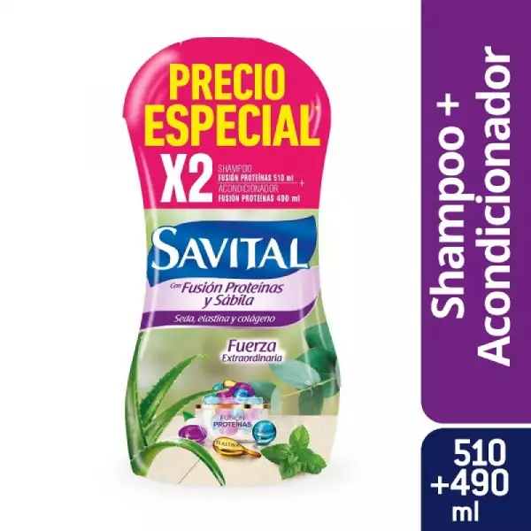 SHAMPOO SAVITAL FUSION PROTEINAS X510ml + ACONDICIONADOR X490ml